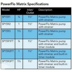 The Hayward W3SP1592 Power-Flo Matrix 1HP Above Ground Pool Pump has been engineered as a uniquely superior above-ground pool pump. With a single push of a button, this truly versatile pump changes from a vertical to a horizontal discharge and back again. Its large profile and integrated styling makes the Power-Flo Matrix a swimming pool pump like no other.