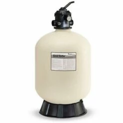 Pool water is routed through the sand-filled pressure vessel (requires 350 lbs of #20 silica sand). Over time, dirt accumulates in the spaces between the sand particles, causing the pressure in the vessel to rise. This signals you to “backwash” the filter. Simply reverse the water flow and “knock out” the dirt.